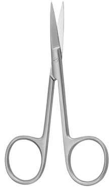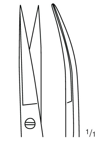 Tijera iris curva, punta aguda/aguda, long. 11.5 cm, 4 1/8″.